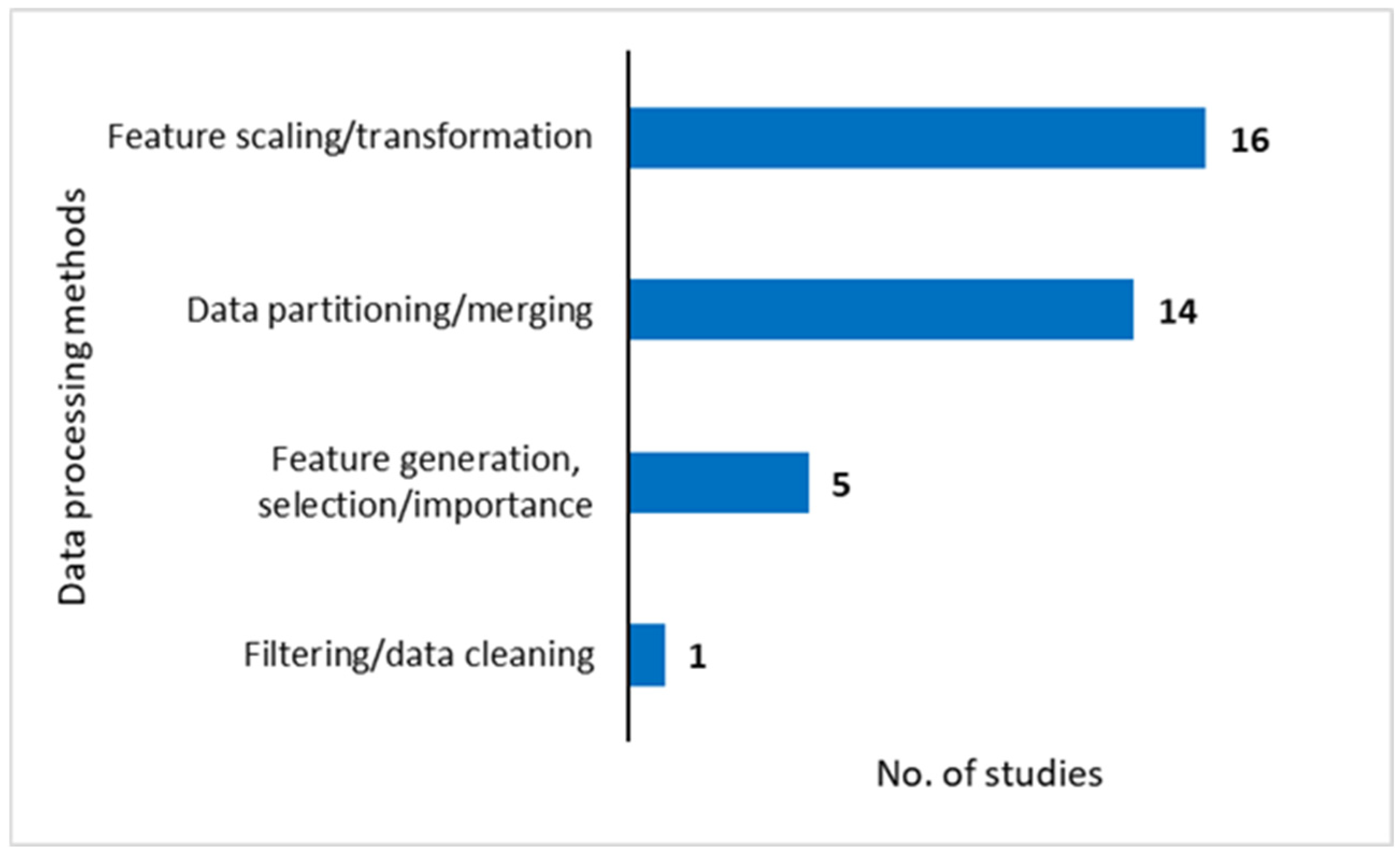 | Feature generation, selection, or importance | Permutation importance (PI), principal component analysis (PCA), self-organized maps (SOM), wrapper reduction method (WRM), maximum dissimilarity algorithm (MDA), KNN imputation method (KNNIM), and manual feature elimination or synthesis |
