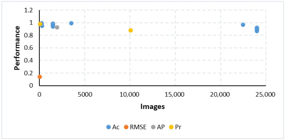 | Ichim & Popescu [94] | YOLO, GAN, AlexNet, LeNet, and ResNet [Segmentation of vegetation and flood extension] | UAV images. 24,000 samples (30% validation) | Image labeling and segmentation | OAc = 85.9–94.4% |