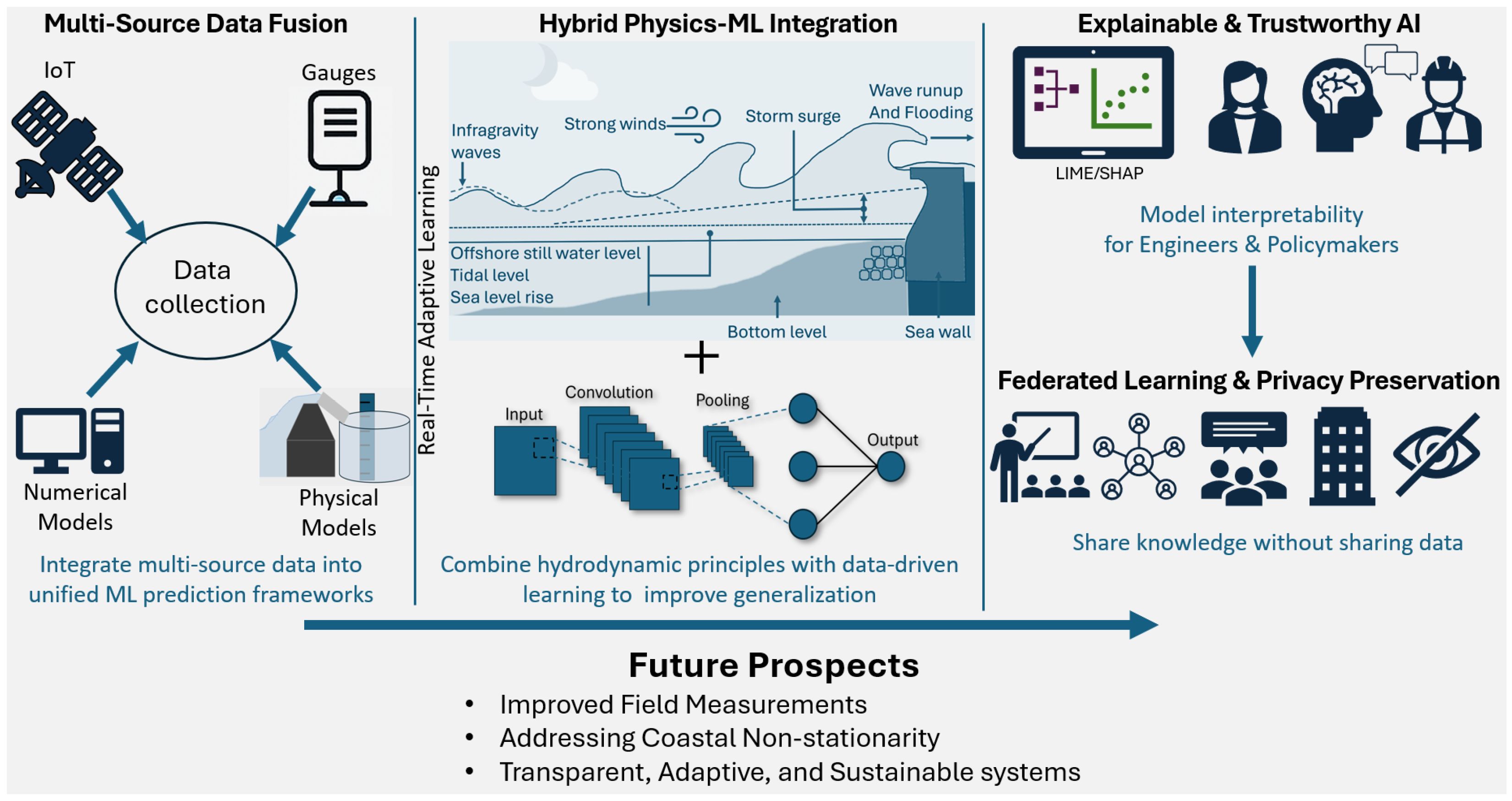 Duiker, M.L.; Ramos, V.; Taveira-Pinto, F.; Rosa-Santos, P. Predicting Coastal Flooding and Overtopping with Machine Learning: Review and Future Prospects. J. Mar. Sci. Eng. 2025, 13, 2384. https://doi.org/10.3390/jmse13122384