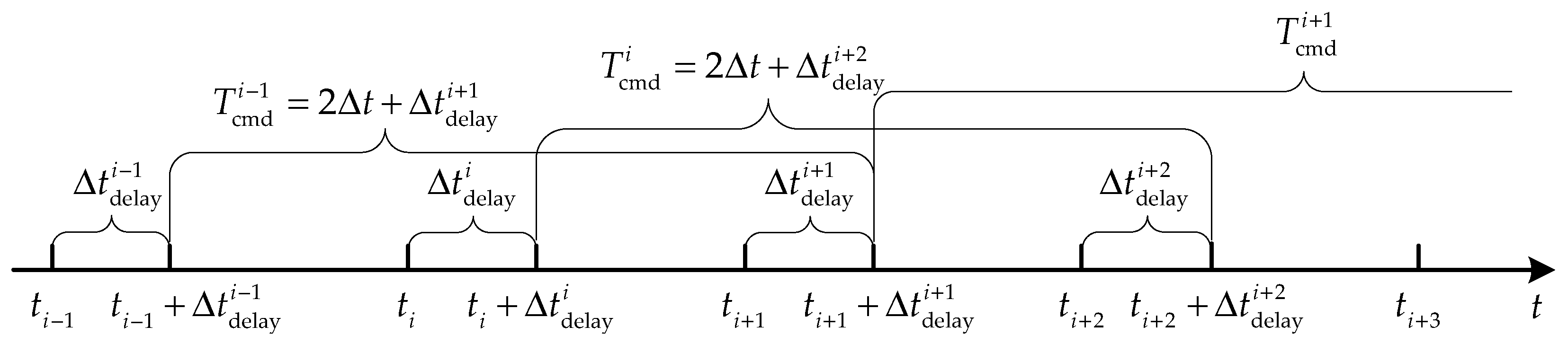 Firstly, the issue of communication intervals in underwater acoustic communication is considered. To ensure the continuity of control instructions for the follower UUV, the leader UUV transmits a control command sequence of duration to the follower UUV at intervals of .