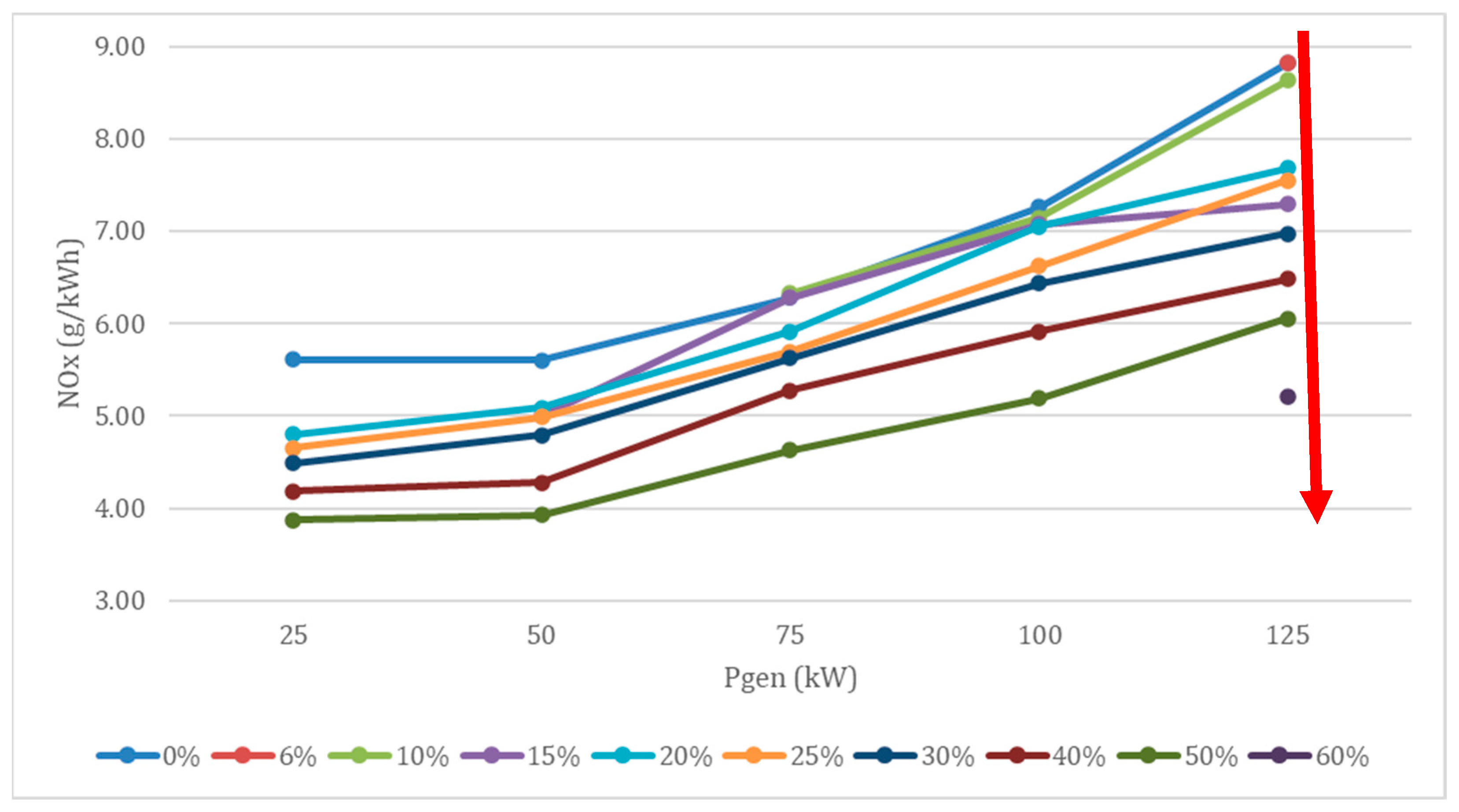 - Lower CO2 emissions at higher loads are observed in the diesel-only measurements due to an improvement in the specific fuel consumption. This is also confirmed by Papagiannakis et al. [18].