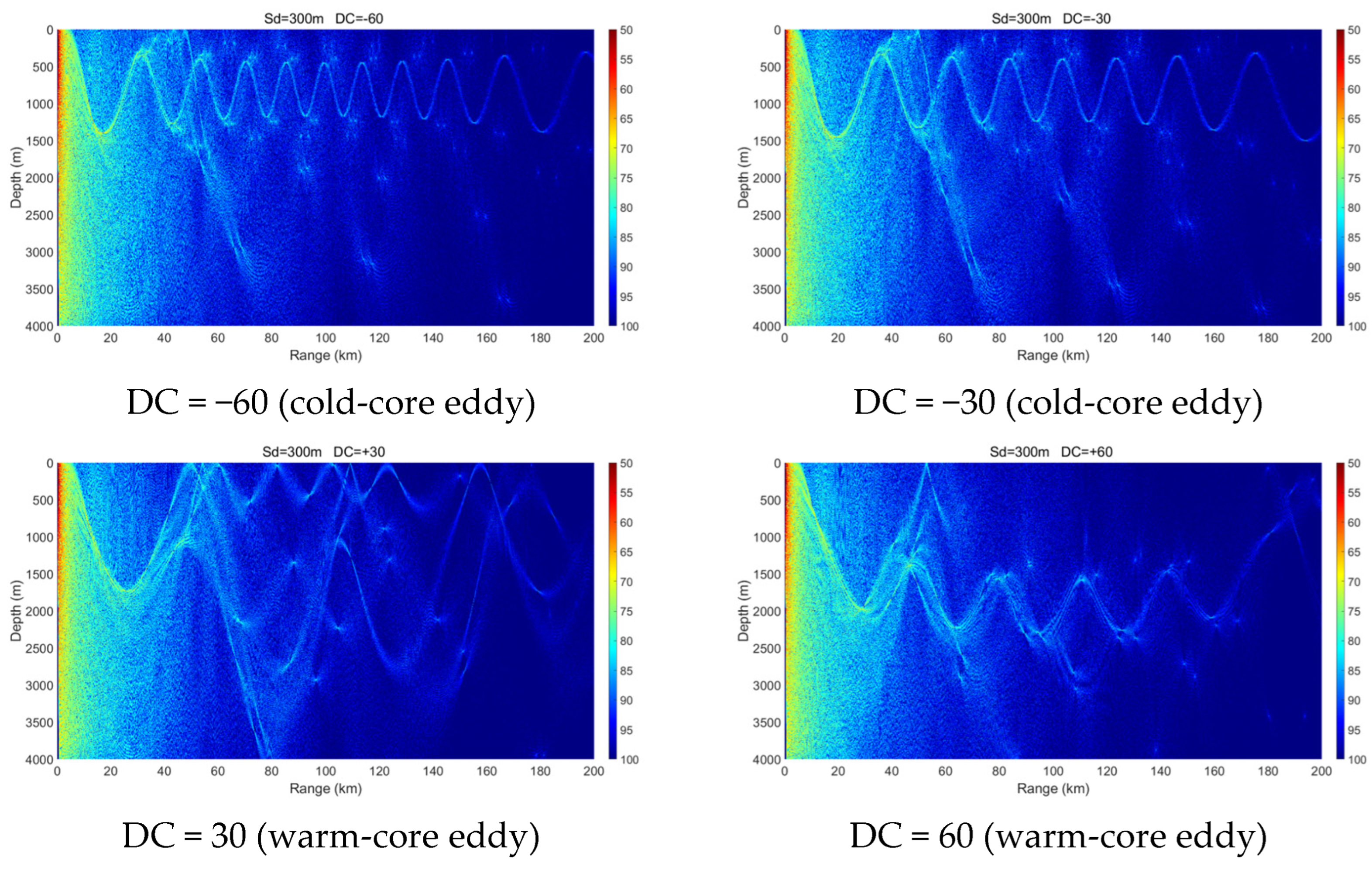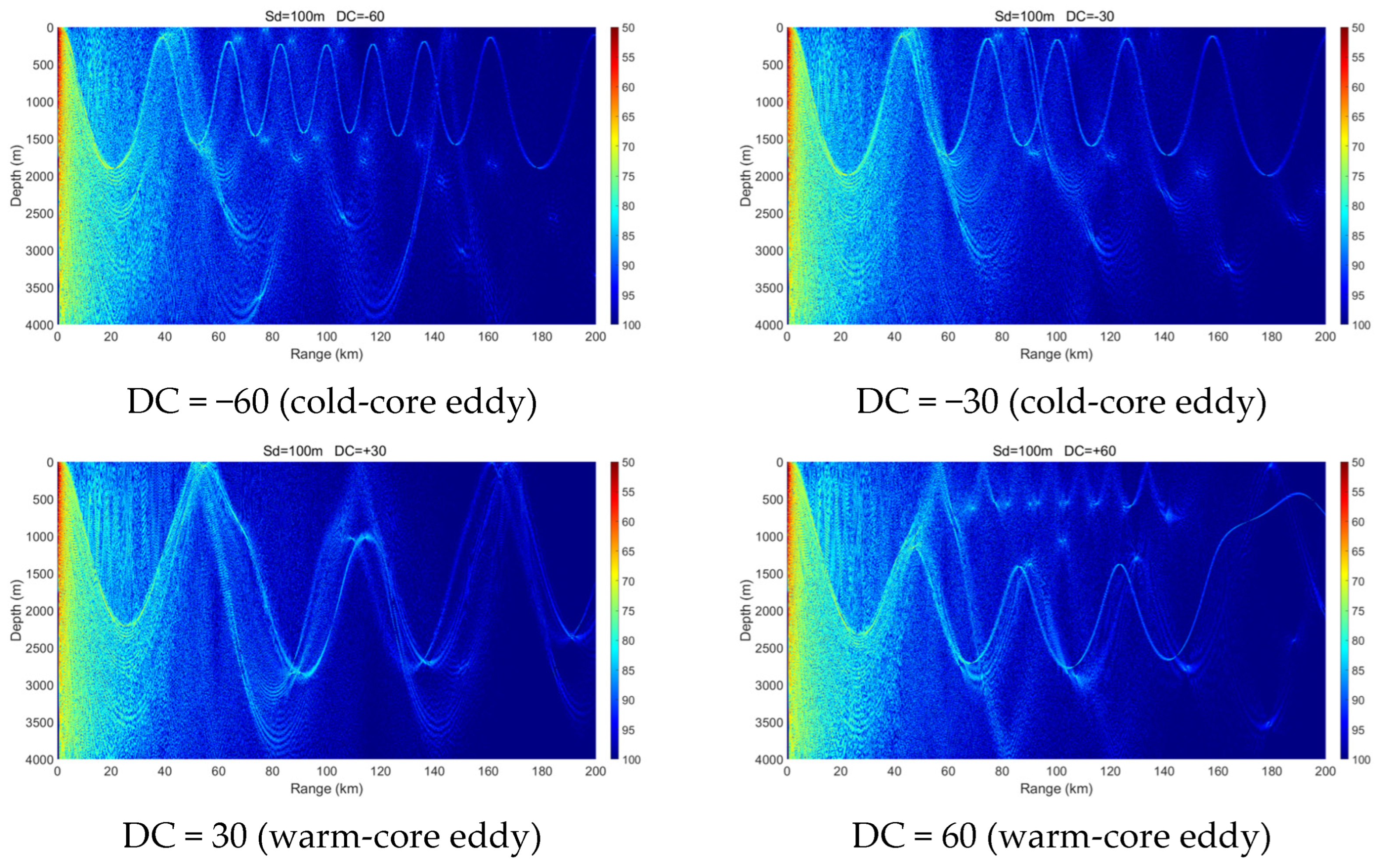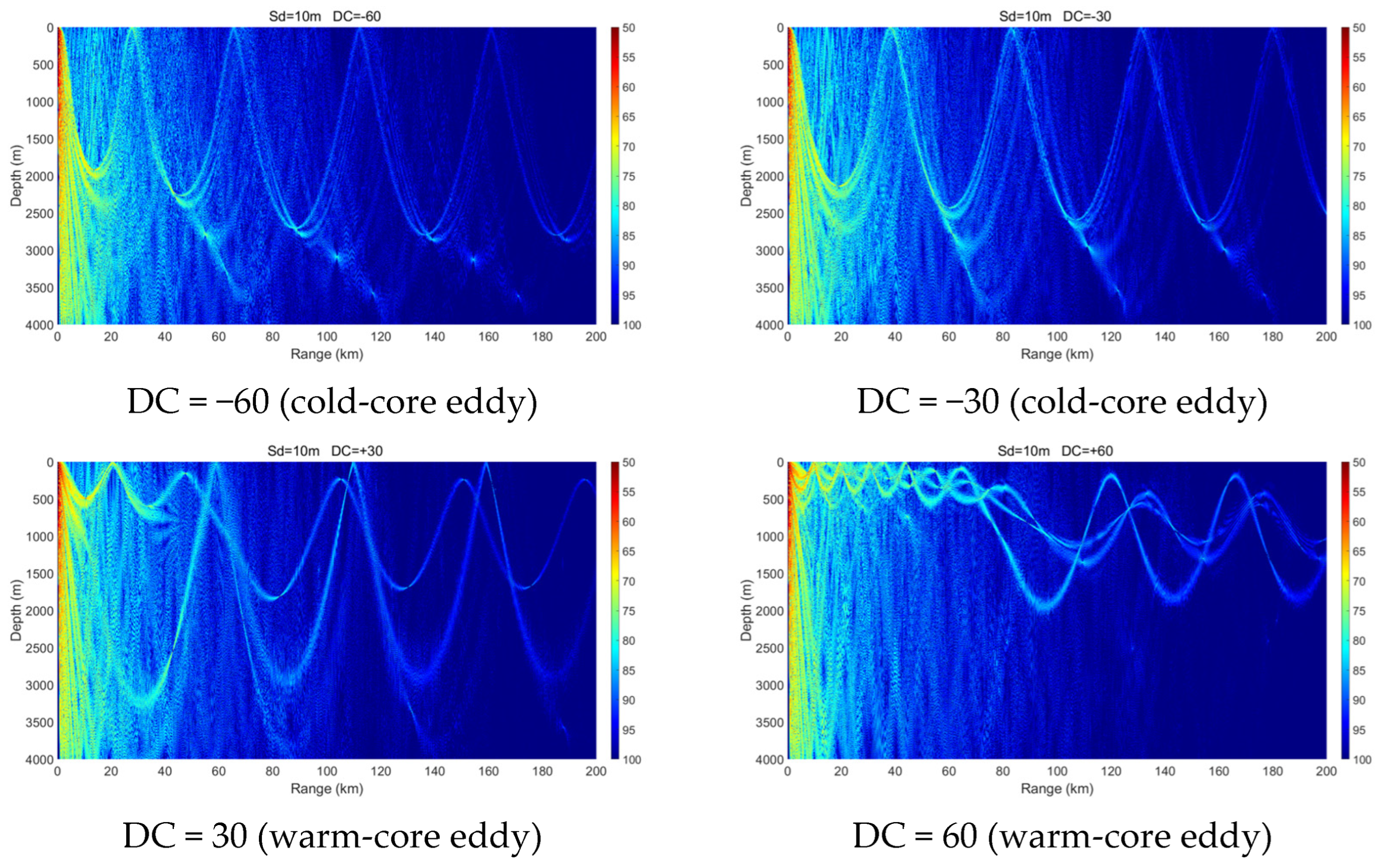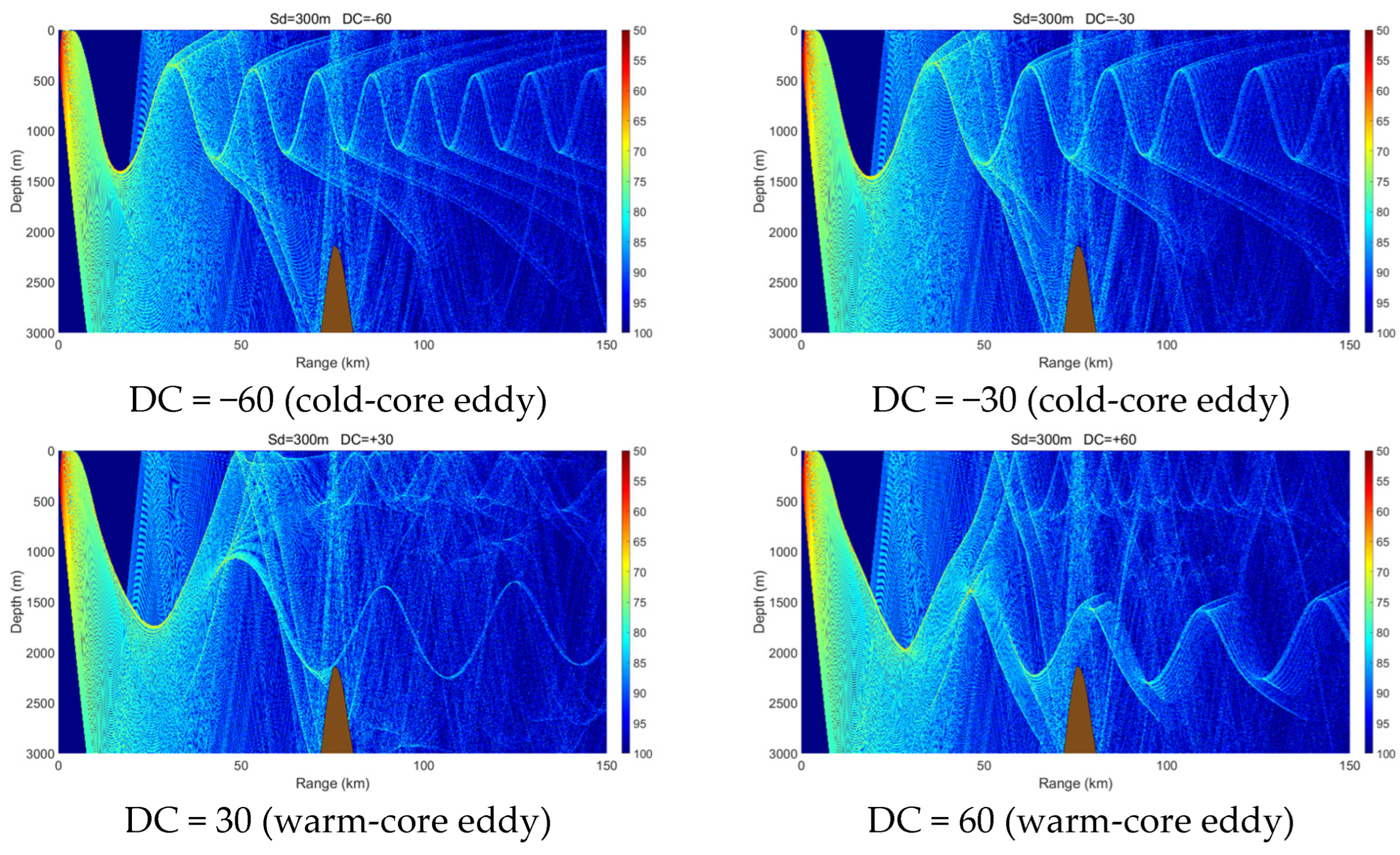 - Wu, Y.S.; Qin, J.X.; Li, Z.L.; Wu, S.; Wang, M.; Li, W.; Guo, Y. Warm-core eddy effects on sound propagation in the South China sea. Appl. Acoust. 2023, 211, 109551. [Google Scholar] [CrossRef]