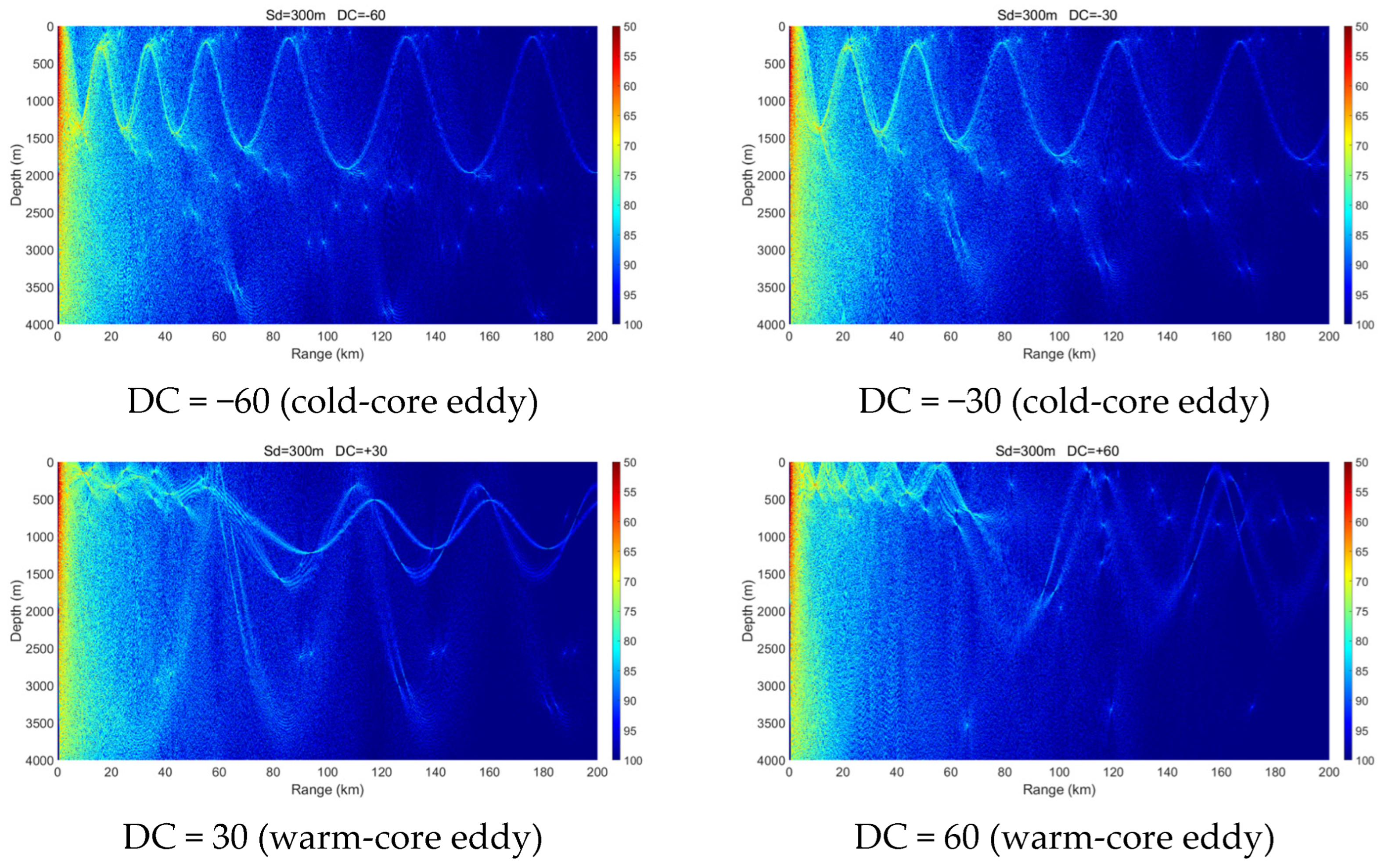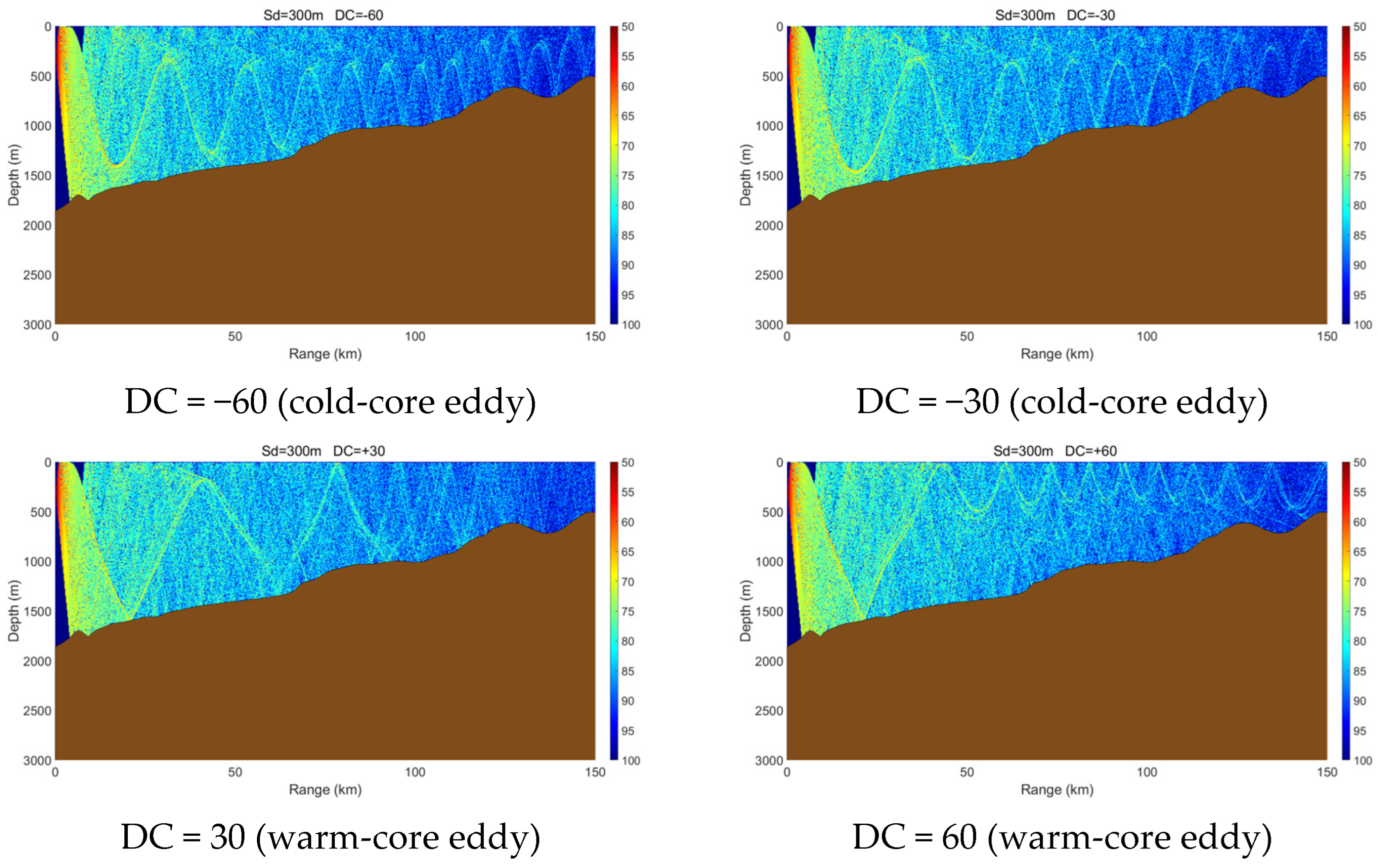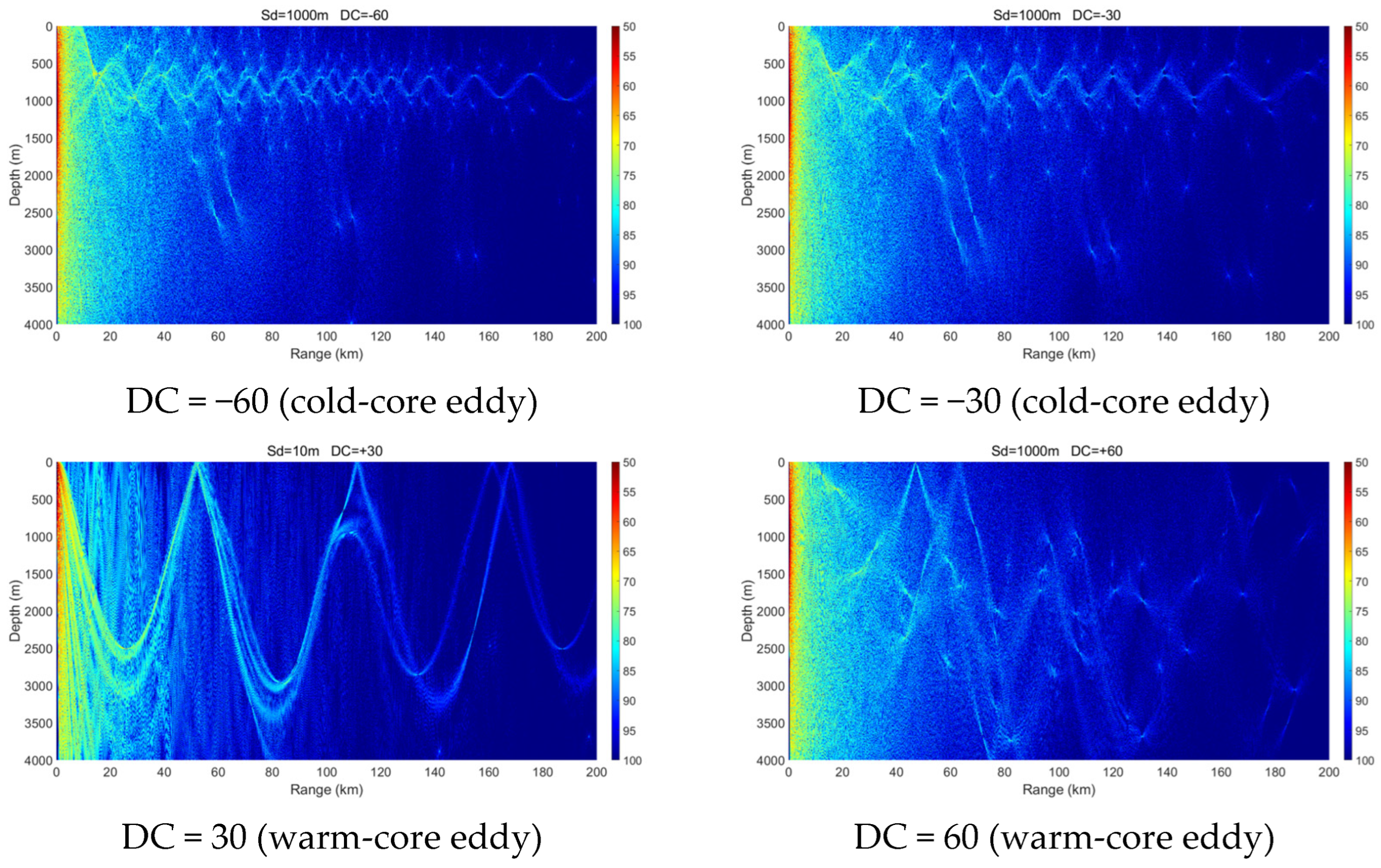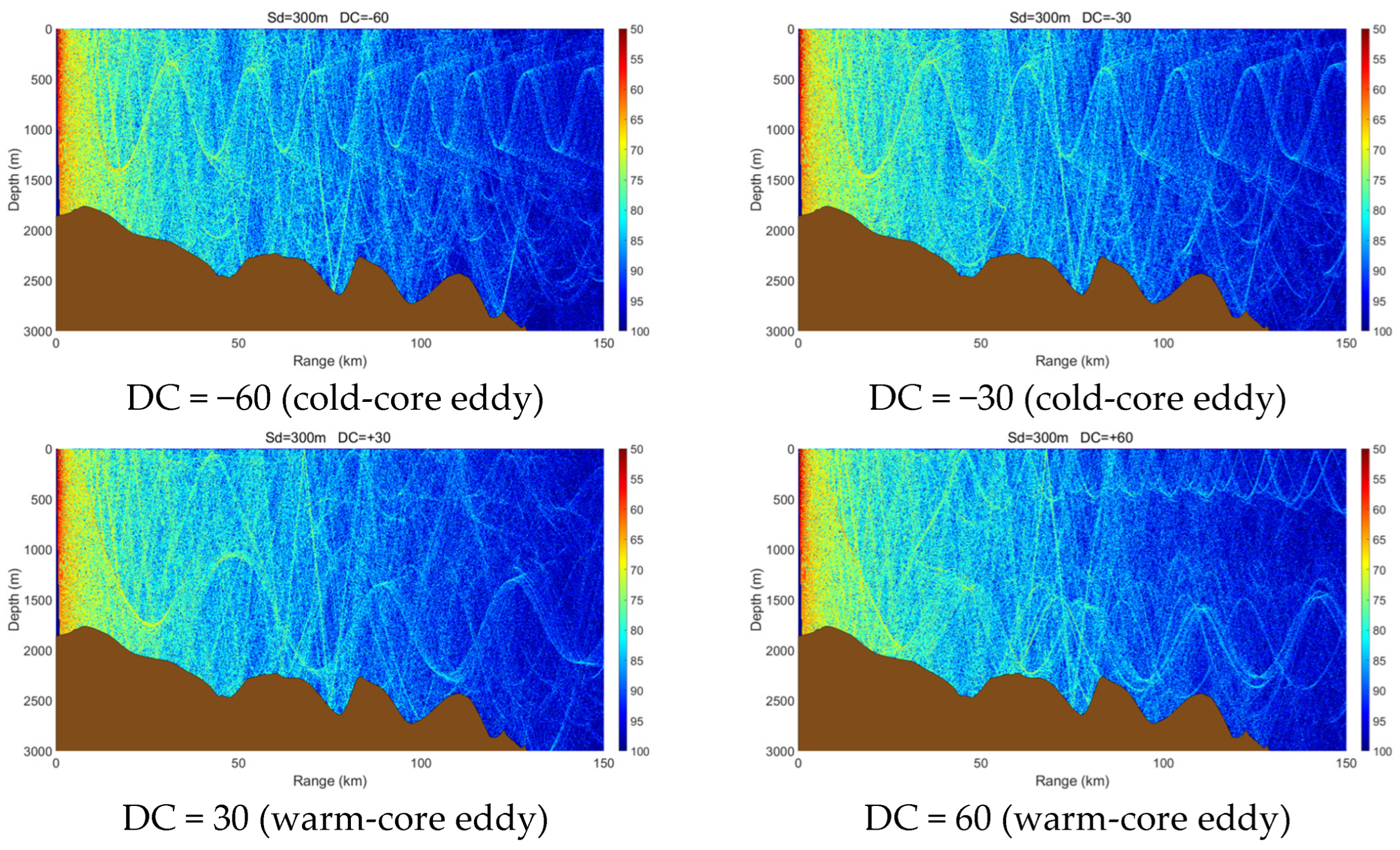 - Wu, Y.S.; Qin, J.X.; Li, Z.L.; Wu, S.; Wang, M.; Li, W.; Guo, Y. Warm-core eddy effects on sound propagation in the South China sea. Appl. Acoust. 2023, 211, 109551. [Google Scholar] [CrossRef]