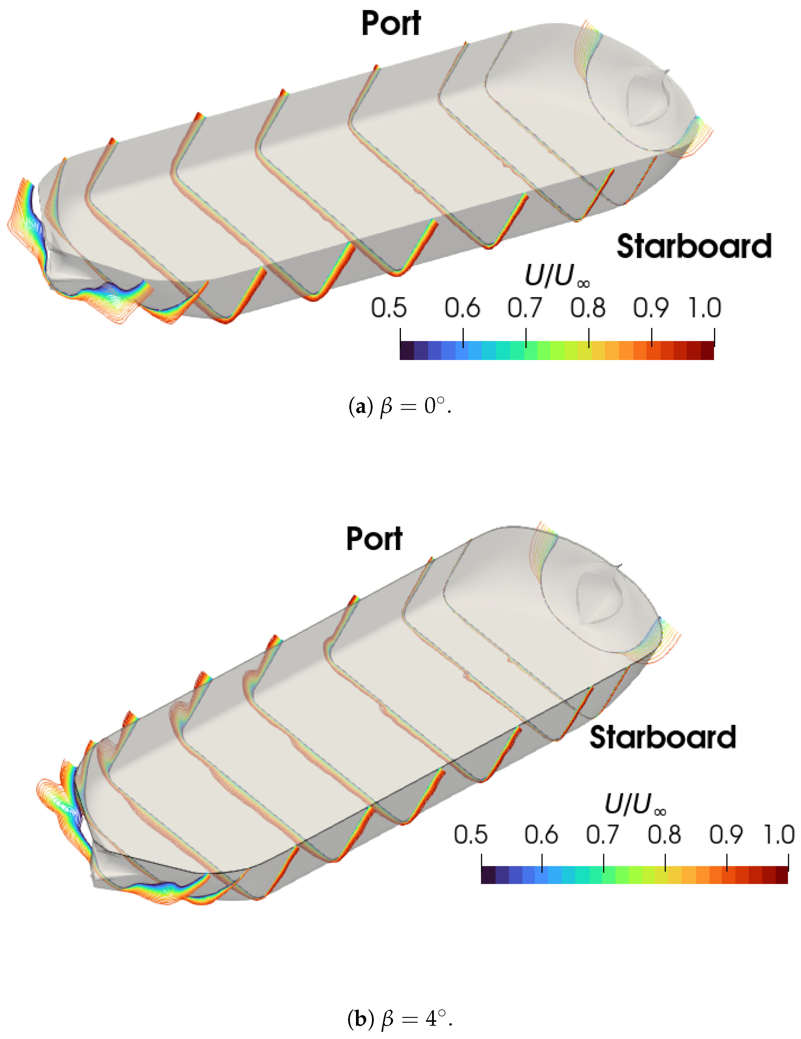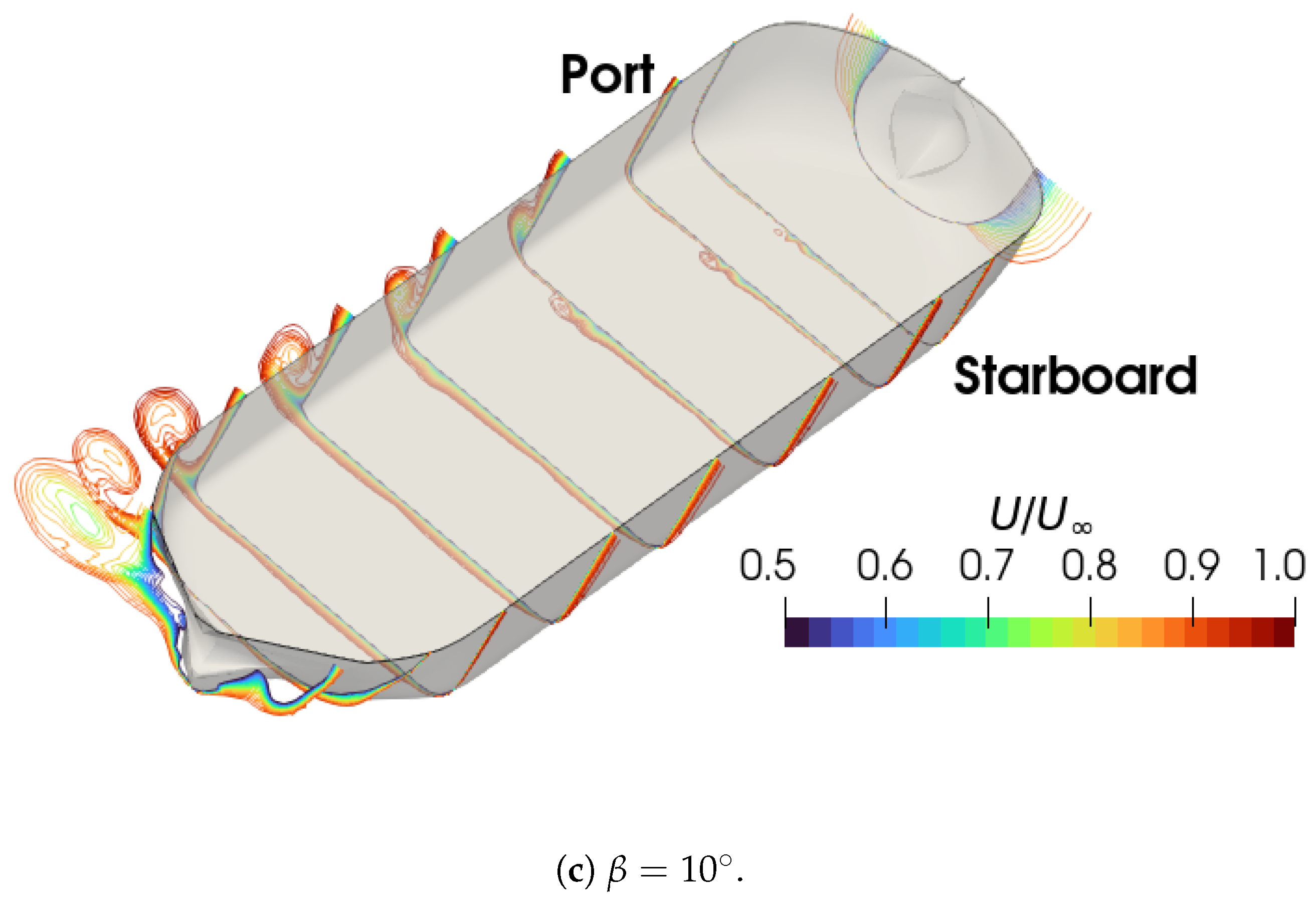 39] demonstrated the capability of the Finite Volume Method (FVM) to predict hydrodynamic forces in oblique flows, even for complex hull forms, reproducing standard captive model tests such as oblique towing, circular motion, and planar motion mechanism tests. Initial numerical predictions, however, showed a