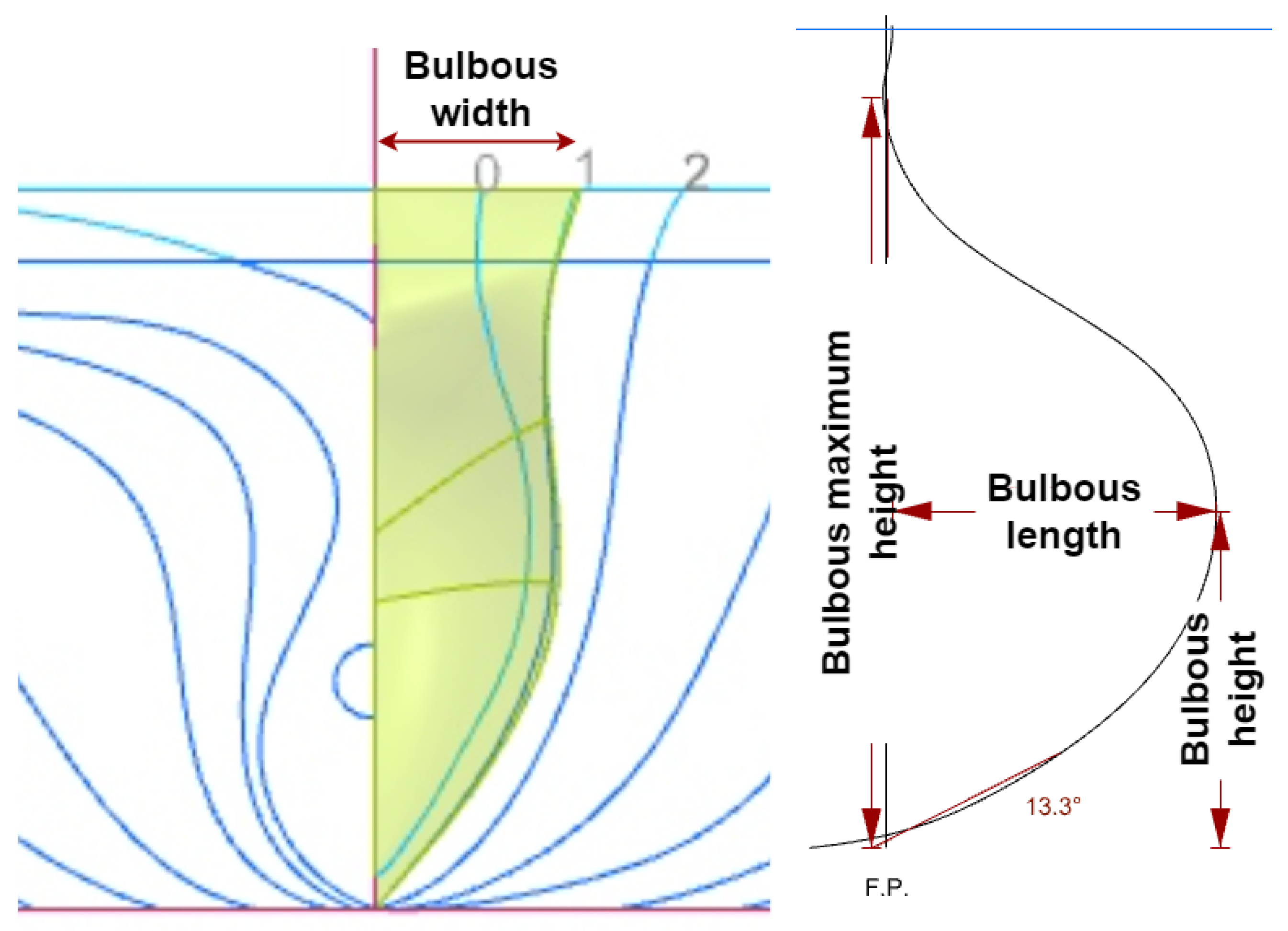 , which quantifies the stern layout. For the range of applicability of these formulations, refer to Chame [