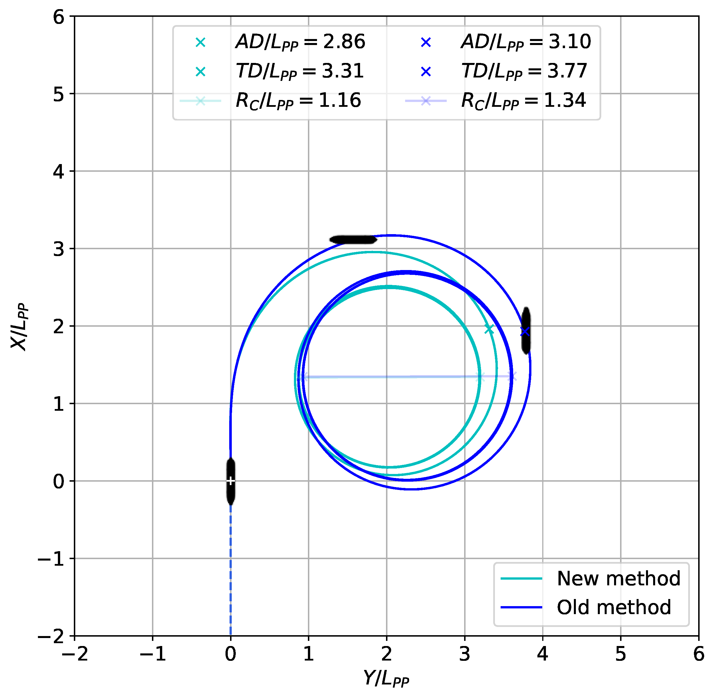 24], using empirical formulas outside the range of their regression databases can yield unreliable predictions of maneuverability. Consequently, further research is necessary to understand how the new design affects maneuvering characteristics, and predictions should be adjusted accordingly.