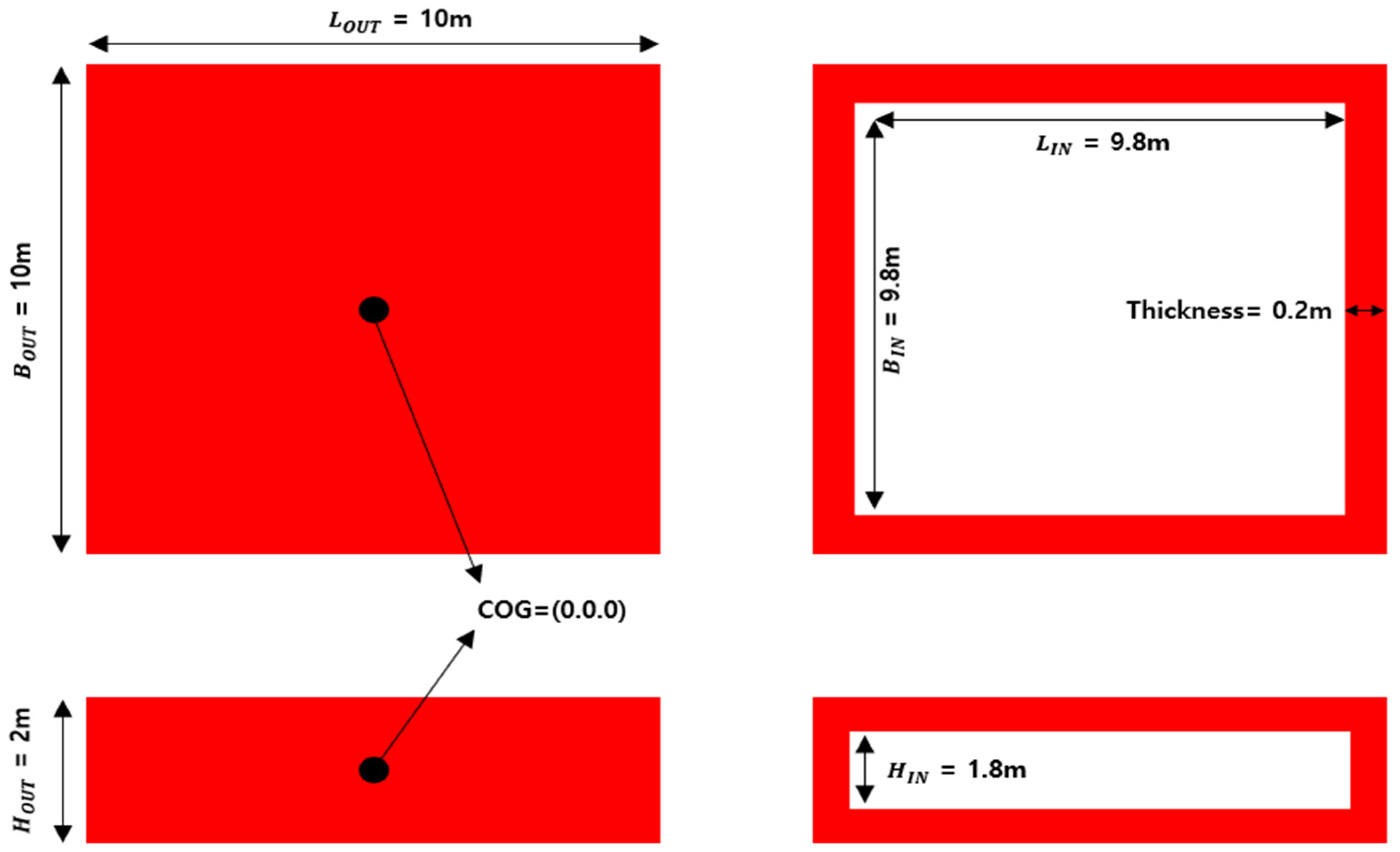 kN, a unit submerged mass of 54.75 kg/m, and was attached to a seabed anchor located at a 50 m water depth. The R4 studlink chain type was selected because it represents an industry-standard chain class widely used for barge-type and rectangular floating structures. Its mechanical stiffness, mass properties, and hydrodynamic drag characteristics provide a realistic and practically relevant baseline for catenary mooring behavior, ensuring that the comparison between the two solvers is conducted under representative offshore design conditions.