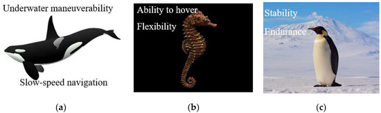 Bionic models for streamlining: (a) killer whale, (b) seahorse, (c) penguin.