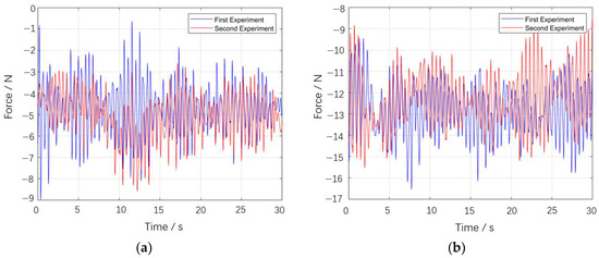 As shown in Figure 10, test results with significant errors were excluded, and the remaining data were averaged. The approximate resistance of the model under the two working conditions was then obtained by subtracting the no-load resistance from the total resistance. The calculation results are presented in Table 3.