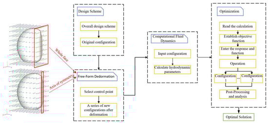 The vehicle configuration optimization process (Figure 17) utilizes free deformation technology to modify the original design, establishing an optimization objective function. This process is divided into four steps: design, deformation, simulation, and optimization. CAESES software was used for free deformation, with the vehicle configuration deformation grid set to 1.5 m × 1 m × 1.8 m, divided into eight equal sections.