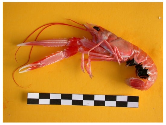 - Rice, A.L.; Chapman, C.J. Observations on the burrows and borrowing of two mud-dwelling decapod crustaceans Nephrops norvegicus and Goneplax romboides. Mar. Biol. 1971, 10, 330–342. [Google Scholar] [CrossRef]