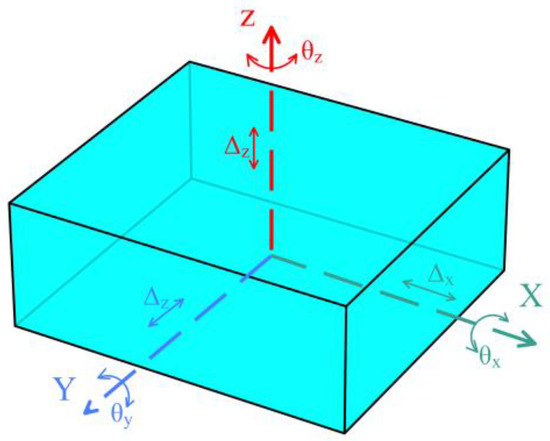 The three rotational degrees of freedom are extracted from , namely the rotation about the x-axis by , rotation about the y-axis by , and rotation about the z-axis by :