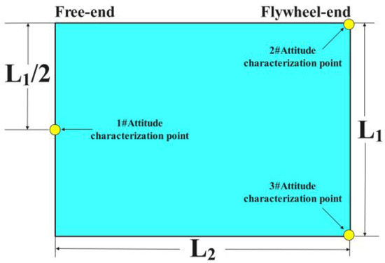 Due to the concentrated mass at the flywheel end of the main engine, adjusting the jacking bolts closest to the flywheel end has the most significant impact on the verification parameters [24]. Therefore, the positions of the selected attitude characterization points are shown in Figure 4. L1 is the main engine’s width and L2 is its length.