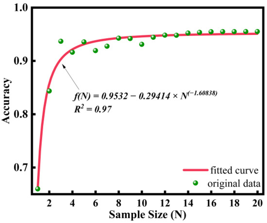 The accuracy data calculated from the above formula are fitted using a nonlinear function. The fitting function and its results are shown in Figure 15.