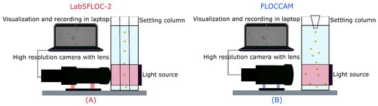 (A) Schematic representation of the LabSFLOC-2 setup [34] and (B) the FLOCCAM setup [47,48]. For physical pictures, see Figure S3.