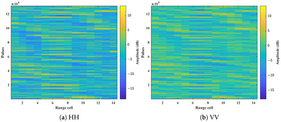 Range–pulse distribution under different polarization modes. (a) HH polarization. (b) VV polarization.