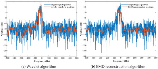 Wavelet and EMD reconstruction suppression algorithm. (a) Wavelet transform-weighted reconstruction. (b) EMD reconstruction.