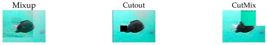 To further augment the dataset with more images, the following data augmentation methods were applied: Mixup [30], a data augmentation technique, linearly combines features from different samples, enabling the model to capture linear relationships between samples. This form of linear modeling helps to reduce the model’s bias when processing data outside the training set; Cutout [31] involves filling a randomly placed square of fixed size with zeros. To minimize the impact of zero-padding on training, some additional data processing is necessary; CutMix [32] places two targets in a local region, enhancing the model’s ability to identify complex areas. The effects of these augmentations are illustrated in Figure 3.