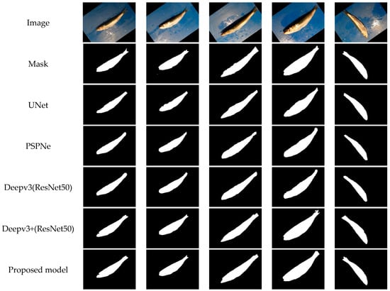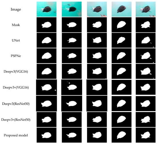 The fish segmentation model proposed in this study achieved the highest F1 score among all of the models. In comparison with other algorithms, it consistently demonstrated state-of-the-art detection metrics. Furthermore, the ResNet50 backbone outperformed VGG16 in the fish segmentation tasks. Compared to the baseline algorithms, the algorithm incorporating the pyramid feature extraction architecture showed a significant improvement in segmentation performance, sacrificing some computational speed in exchange for a higher detection accuracy.