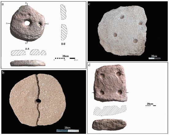 - Ebeling, J.R. Groundstone Objects. In Tel Mor, the Moshe Dothan Excavations, 1959–1960; Barako, T.J., Ariel, D.T., Brandl, B., Ebeling, J.R., Hirschfeld, N., Maddin, R., Maher, E.F., Martin, M.A.S., Muhly, J.D., Reese, D.S., et al., Eds.; Israel Antiquities Authority Reports; Israel Antiquities Authority: Jerusalem, Israel, 2007; pp. 223–228. Available online: https://www.jstor.org/stable/j.ctt1fzhddh.14 (accessed on 12 December 2024).