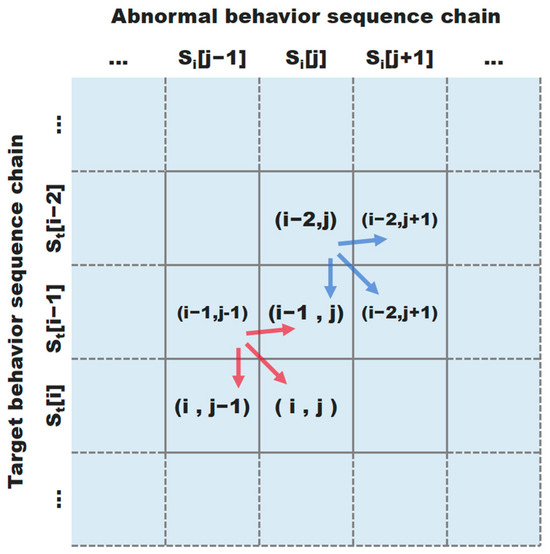 The Smith–Waterman algorithm is a dynamic programming method widely used for local sequence alignment in bioinformatics. It constructs a dynamic programming matrix to evaluate all possible alignments and determine the optimal local alignment. In this study, the algorithm is applied to locally align the behavior sequence chains of the target vessel and anomalous vessels. By optimizing the scoring matrix and considering matches, mismatches, insertions, and deletions, the best local alignment between the two sequence chains is determined through backtracking of the score matrix.