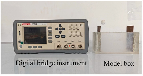A precision LCR digital bridge instrument with model number AT810A was used for the test, as shown in Figure 1. The instrument can select any test frequency of 10 Hz~300 kHz (AT2818), can select the test signal level in 0.01 V steps of 0.01 V~2.00 V, and automatically measure the inductance L, capacitance C, resistance value R, complex impedance Z, figure of merit Q, loss angle tangent value D, phase angle (degree), and phase (radian). The voltage used in the test is 1 V, and the frequency used is 1000 Hz.
