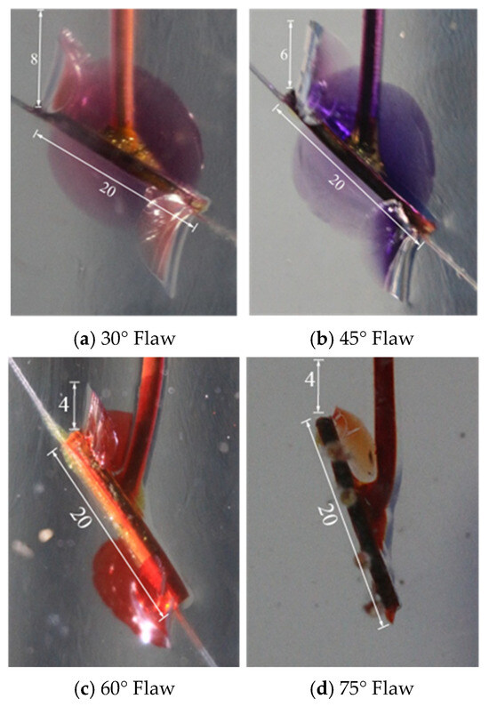 It was analyzed that the specimen fracture angle was θ = π/4 + φ/2 (where φ was the internal friction angle of the material) under the axial pressure condition [49]. When the dip angle was close to the fracture angle, the flaw tip was very easy to crack and the initiation stress was greatly reduced. In this study, the fracture angle of the transparent resin material was between 45° and 50°, leading to the lowest initiation stress at the 45° flaw.