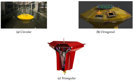 The TALOS project, also known as NHP-WEC, was selected by UK Research and Innovation (UKRI) as part of efforts to advance wave energy technologies and harness oceanic energy resources. The project emphasises refining the TALOS design and PTO system while driving innovations in control systems, monitoring, and resource forecasting. A collaboration in 2023 between Lancaster University and the National Renewable Energy Laboratory (NREL), under the U.S. Department of Energy’s TEAMER programme, further supported the development of numerical models to enhance the system’s reliability and performance. Figure 2 illustrates the various configurations of the TALOS-WEC, highlighting its structural adaptability. The models include triangular, octagonal, and circular configurations, showcasing the system’s versatility in accommodating diverse marine environments.