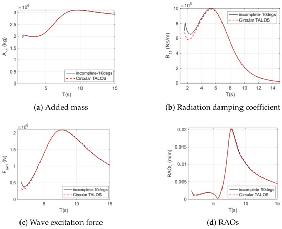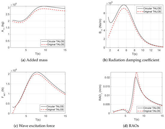 Hydrodynamic coefficients for TALOS-WEC across six degrees of freedom [43,45,46].