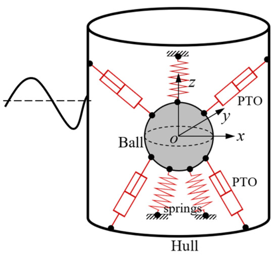Dynamics of the Ball: The internal reaction mass (ball) is connected to the hull via a spring and the PTO system. Its motion is influenced by the relative displacement and velocity between the ball and the hull. The equation governing the ball’s dynamics is
