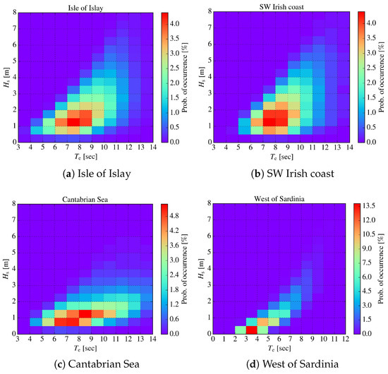 Wave energy, in particular, stands out for its high energy density, 24/7 availability, and greater predictability compared to wind [12,13,14]. With a global potential of 32,000 TWh/year and approximately 2 TW of extractable power, wave energy has the capacity to meet a substantial share of global energy demand [15]. In Europe, wave energy resources, such as those off the coasts of Ireland and Scotland (70 kW/m), could generate 50 TWh/year, covering 16% of the UK’s annual electricity consumption [16,17].