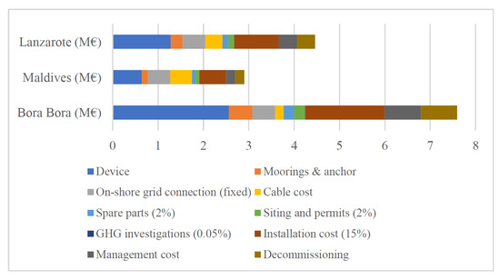 - Guo, C.; Sheng, W.; De Silva, D.G.; Aggidis, G. A Review of the Levelized Cost of Wave Energy Based on a Techno-Economic Model. Energies 2023, 16, 2144. [Google Scholar] [CrossRef]