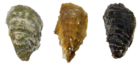- Liang, Y.; Hu, H.; Cheng, G.; Xu, C.; Li, Q. Growth, survival and thermotolerance of diploids, triploids and tetraploids of the Fujian oyster Crassostrea angulata with normal, golden and black shell colors. Aquaculture 2024, 591, 741131. [Google Scholar] [CrossRef]