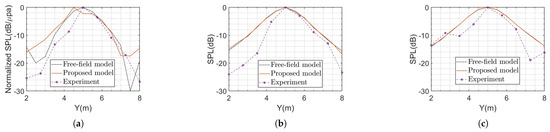 - The spatial distribution of DFW sound fields at different frequencies is measured experimentally. In the direction of the sound axis, the average error between the proposed model and the measured data is less than 3 dB; in the direction of depth, the average error between the proposed model and the measured data is less than 6 dB, effectively verifying the applicability of the proposed model.