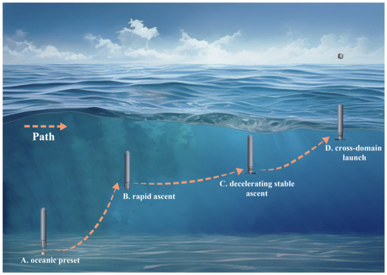 Under ideal conditions, the unpowered vehicle possesses a sufficient underwater velocity, allowing it to carry out its action at the precise moment when it emerges from the surface of the water, thus ensuring both rapidity and stealthiness of the execution of the mission. However, in practical scenarios, because the underwater velocity is contingent upon the vehicle’s adequate positive buoyancy, excessive speed and the cross-domain phase are subject to significant fluctuations. This is mainly attributed to the abrupt change in the fluid medium during the cross-domain process.