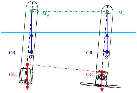 The static restoring moment experienced by an unpowered vehicle during launch while it floats on the water surface is influenced not only by disturbances such as sea breeze and waves but also by its emergence posture. This static restoring moment can be expressed as follows: