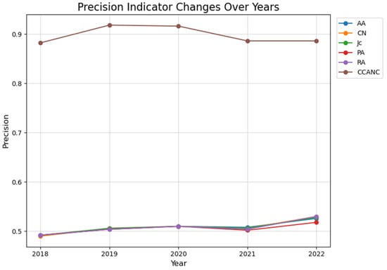It is worth noting that this study has some limitations. In terms of data, this study only selected the data of China Port Yearbook and China Shipping Gazette for 2018–2022, and it focused on the shipping route networks of major container ports in East and Southeast Asia. This data selection has certain limitations, and the periodicity of the data may exclude newer or smaller ports, affecting the integrity of the data. Focusing only on East and Southeast Asian ports without considering international routes may limit the comprehensiveness of the analysis, as many ports in the region are an important part of global trade and their operations and resilience are heavily influenced by the global route network. From the perspective of the universality of the research results, this study mainly analyzes the container shipping network in East and Southeast Asia, and the applicability of its conclusions in other regions may be different. Shipping networks in different regions differ significantly in terms of port distribution, route structure, economic environment, etc. For example, shipping networks in Europe and North America may have different dominant port and route patterns, so the conclusions of this study may not be directly applicable to these regions. From the perspective of the link prediction algorithm, the CCANC algorithm only considers network topology indicators, such as centrality, port degree, clustering coefficient, etc., when making a link prediction. However, in the actual shipping network, there are many factors that affect the establishment of new routes between ports, such as inter-port throughput, climate conditions, international oil prices, political factors, and so on.
