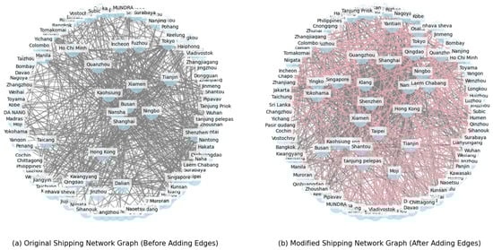Link prediction is an important application of node similarity in complex network theory, which enhances the analysis and evolution prediction of complex networks. Lankeshwara and Ryutaro improved the prediction accuracy by using the information of activity links in social networks [29], while Biswas and Biswas combined community structure and edge centrality indicators for prediction [30]. Wu et al. shifts the focus to links but ignores the directionality of links [31]. Shang et al. solves the directionality problem by analyzing two-way and one-way links [32]. Li et al. emphasizes neural network methods to heighten network efficiency and reliability [33]. In the shipping route network, Tagawa et al. used link prediction to analyze the evolution of the port hierarchy [34] and assumed that the establishment of cooperative relations between ports would help improve the position of ports in the hierarchy and ameliorate the configuration of the route network. Shibuya and Shibasaki introduce an algorithm based on the route network node and link characteristics to study the evolution of the Asian route network [35]. Zhu et al. combined port network characteristics with external factors to make link predictions, providing a basis for improving the connectivity of the route network [36]. However, most models focus on identifying potential connections to optimize the network structure, often ignoring the optimized resilience analysis, resulting in a bias in network optimization strategies.