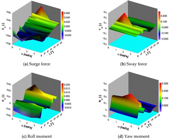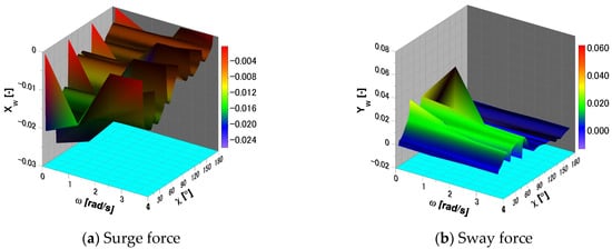 The wave drift forces affect a submarine’s maneuver in irregular waves that are estimated using the second-order wave forces. These are described as follows in Equation (14):