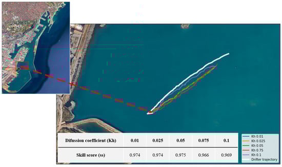 - Révelard, A.; Reyes, E.; Mourre, B.; Hernández-Carrasco, I.; Rubio, A.; Lorente, P.; Fernández, C.D.L.; Mader, J.; Álvarez-Fanjul, E.; Tintoré, J. Sensitivity of Skill Score Metric to Validate Lagrangian Simulations in Coastal Areas: Recommendations for Search and Rescue Applications. Front. Mar. Sci. 2021, 8, 630388. [Google Scholar] [CrossRef]