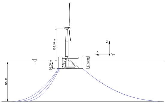 Lateral view of the target FOWT (observed from the positive y-axis).