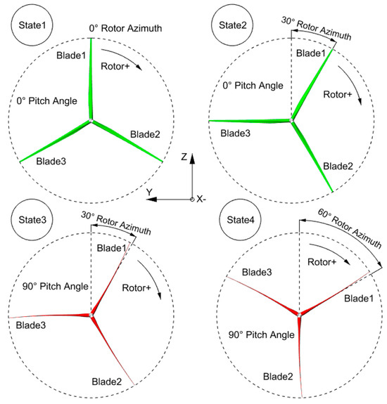 Different rotor states of pitch angle and azimuth.