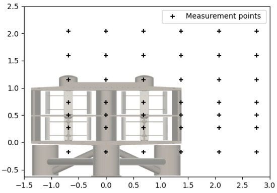 In order to compare our results with the ones obtained by [11] under a steady flow, we mapped the flow with the 3C-LDV system following the mesh on Figure 4 at = {2, 3, 4, 5, 6, 7, 8, 9} at the turbine operating point (), equal to 1.6 in flood tide configuration (FCW) and 1.5 in ebb tide configuration (ECW).
