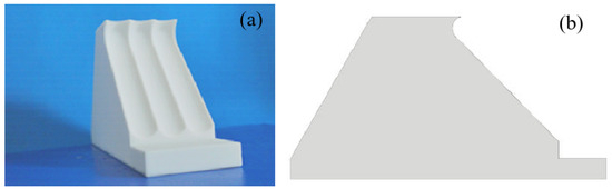 Figure 3 provides a photograph of the seawall model, which has a base width of 30 cm, a height of 25 cm, and a slope angle of 45°. These dimensions are chosen to simulate realistic coastal defense structures and to study the wave–seawall interactions under various conditions. To accurately capture the dynamics of both wave propagation and run-up, two high-speed cameras are strategically installed on the sides of the flume. The first camera, with a resolution of 1280 × 2400 pixels, records the entire wave propagation process, providing a comprehensive view of how the wave evolves as it moves through the flume. The second camera, with a resolution of 600 × 800 pixels, focuses specifically on the detailed interactions of the wave as it runs up the seawall. Both cameras operate at a high frequency of 200 frames per second, ensuring precise and high-resolution data capture necessary for detailed analysis. A 0.2 m × 0.2 m mesh grid was used to calibrate the images recorded by high-speed cameras and determine the size conversion factor.