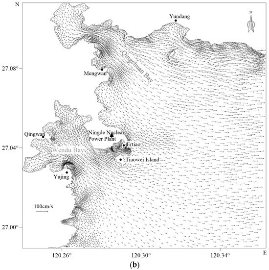 Flood tide (a) and ebb tide (b) near the sea area of the Ningde Nuclear Power Plant.