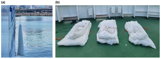 Specifically, jigging fishing vessels play a crucial role in the fishing industry by employing a method that selectively targets species without bycatch [3,4]. This technique is highly valued for minimizing physical damage to the target species, thereby improving their commercial value. As of 2022, jigging fishing vessels accounted for 17% (404 out of 2372) of registered offshore fishing vessels and 14.4% (28 out of 194) of registered deep-sea fishing vessels in South Korea [5]. Among the country’s coastal and offshore fishing vessels, squid or hairtail jigging fishing vessels are the main types that use sea anchors for fishing operations, particularly at nighttime [1]. During jigging operations, the sea anchor and spanker help in maintaining the vessel’s position, allowing it to drift according to the influence of the wind, sea currents, tidal currents, and other external forces, unlike other techniques [1,6]. In addition, some Korean fishing boats and carrier vessels also use sea anchors during their operations [2].