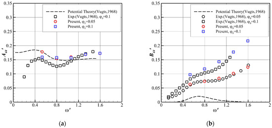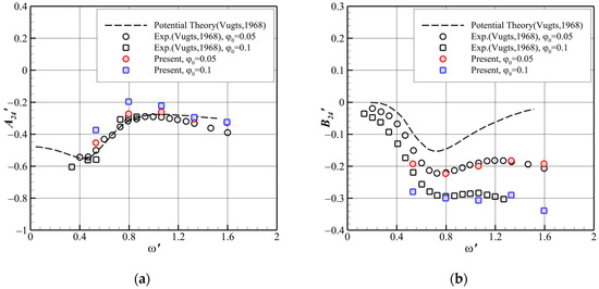 - Vugts, J.H. The hydrodynamic coefficients for swaying, heaving and rolling cylinders in a free surface. Int. Shipbuild. Prog. 1968, 15, 251–276. [Google Scholar] [CrossRef]
