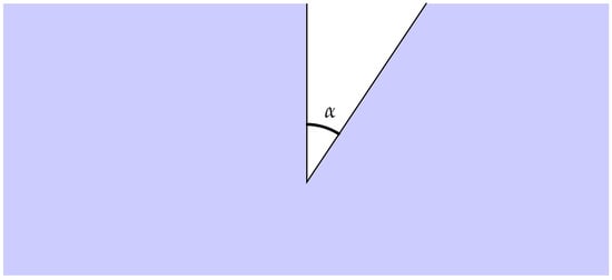 A wedge (white) of angle pierces a fluid domain (blue), generating a singularity in the velocity of the fluid of order in the velocity potential of the fluid. In separable geometries, the special cases can be solved by either the eigenfunction matching method or the singularity-respecting Galerkin approximation.