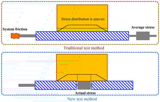 To sum up, the current research methods of the soil-structure interface shear test are mainly limited in three aspects. First, the shear stress is unevenly distributed along the shear plane; second, how can the resistance entirely be eliminated in the complex test system to achieve accurate measurement; and third, the homogeneity of the sample. For the third factor, the unit laboratory interface test can ensure sample homogeneity and is convenient for sampling. However, the soil-structure interface shear test method depends on the soil properties. For the kit with unique shape sample requirements, the preparation and loading process of the sandy soil sample is more complex than that of the clayey soil sample. For the first and second factors, a new set of shear apparatuses should be developed and evaluated to assess the soil-structure interface’s actual shear behaviours. Thus, to eliminate the boundary effect and the complex system friction, this paper proposes a modified interface test method. The new soil-structure interface test method sets one tangential force sensor inside the soil-structure interface, as shown in Figure 1. This method was validated and supported by Liu et al. [45].