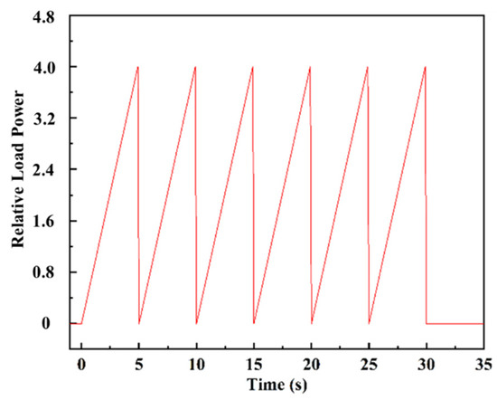 where , , , represent the power–time curve functions for the load, parallel gensets, supercapacitor, and battery during the rectangular LPPL operation, respectively. and are the sub-functions of , and are the sub-functions of . represents the load cycle time, represents the number of load operation cycles, and represents the time for load mutations at the rising or falling edge.